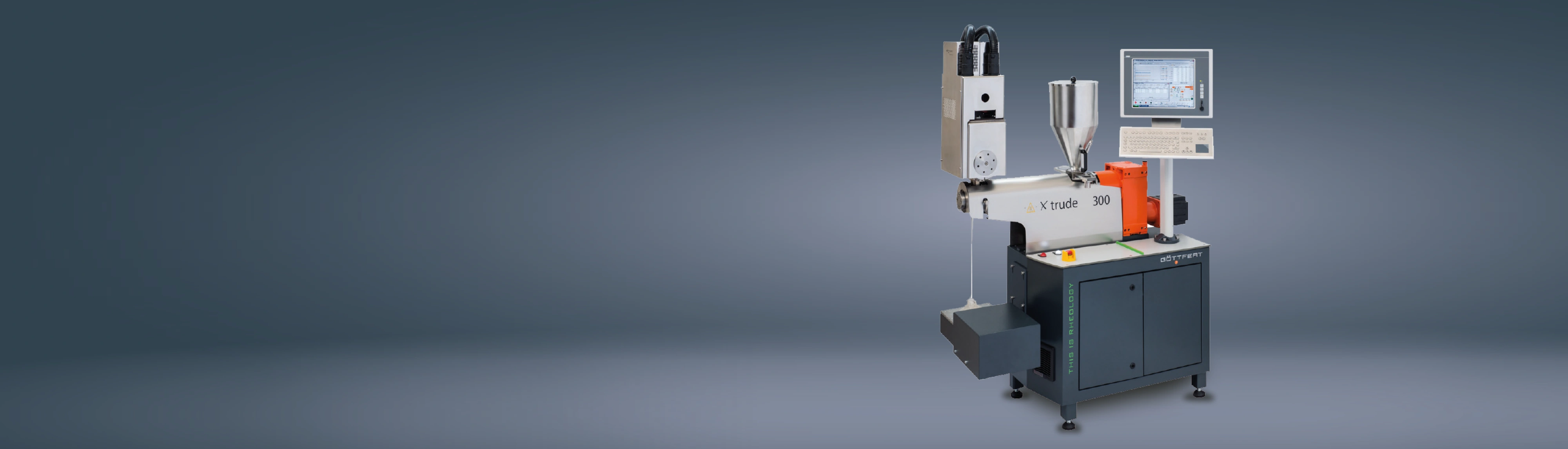 The Online-Rheometer measuring heads are mounted on a GÖTTFERT lab scale extruder and are supplied with melt. The material feeding of the small extruder is fully automated by our Online Samplers.